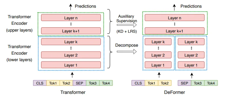 따라서 전반부 Layer는 별도의 입력으로 간주하고 후반부 Attention Layer를 공유하는 구조를 고안하고, 이를 Similarity Loss와 Task-specific Loss 그리고 Knowledge Distillation Loss로 학습시켰습니다. 중간 입력을 Decompose하기 때문에 논문의 구조는 Deformer가 되었습니다.