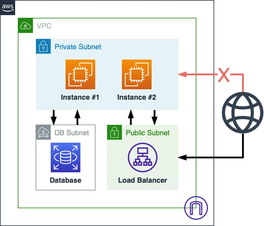 데이터베이스에 민감한 개인정보가 포함되어 추가 보안 조치가 필요한 경우 Private 서브넷 외에도 데이터베이스 서브넷을 생성할 수 있습니다. 데이터베이스 서브넷은 Private 서브넷을 통해서만 접근할 수 있습니다.