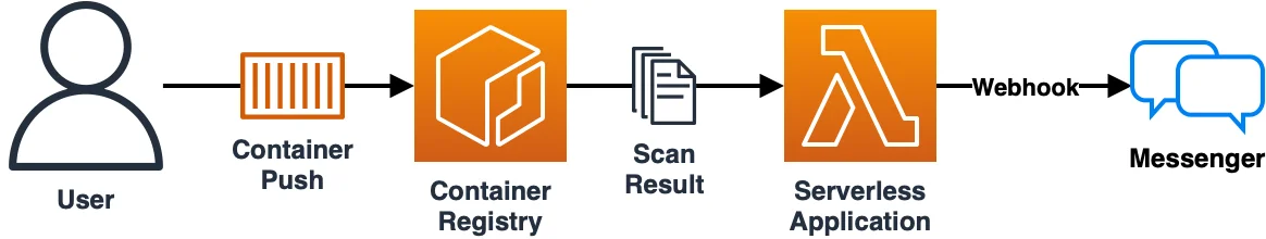 Scan on push, EventBridge 서비스와 Lambda를 함께 사용하여 이미지를 푸시하면 자동으로 기본 스캔을 실행하고, 이 결과를 슬랙에 알려주는 파이프라인을 만들 수 있습니다. (scan on push 이벤트)