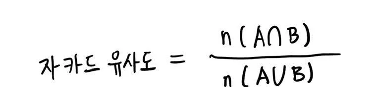 두 문서가 완전히 동일하다면 자카드 유사도는 1이 된다는 것을 알 수 있죠. 또 두 문서에 겹치는 단어가 하나도 없을 정도로 문서가 다르다면 자카드 유사도는 0이 되겠고요. 문서의 유사성을 판단하는 하나의 지표라고 생각하시면 됩니다.