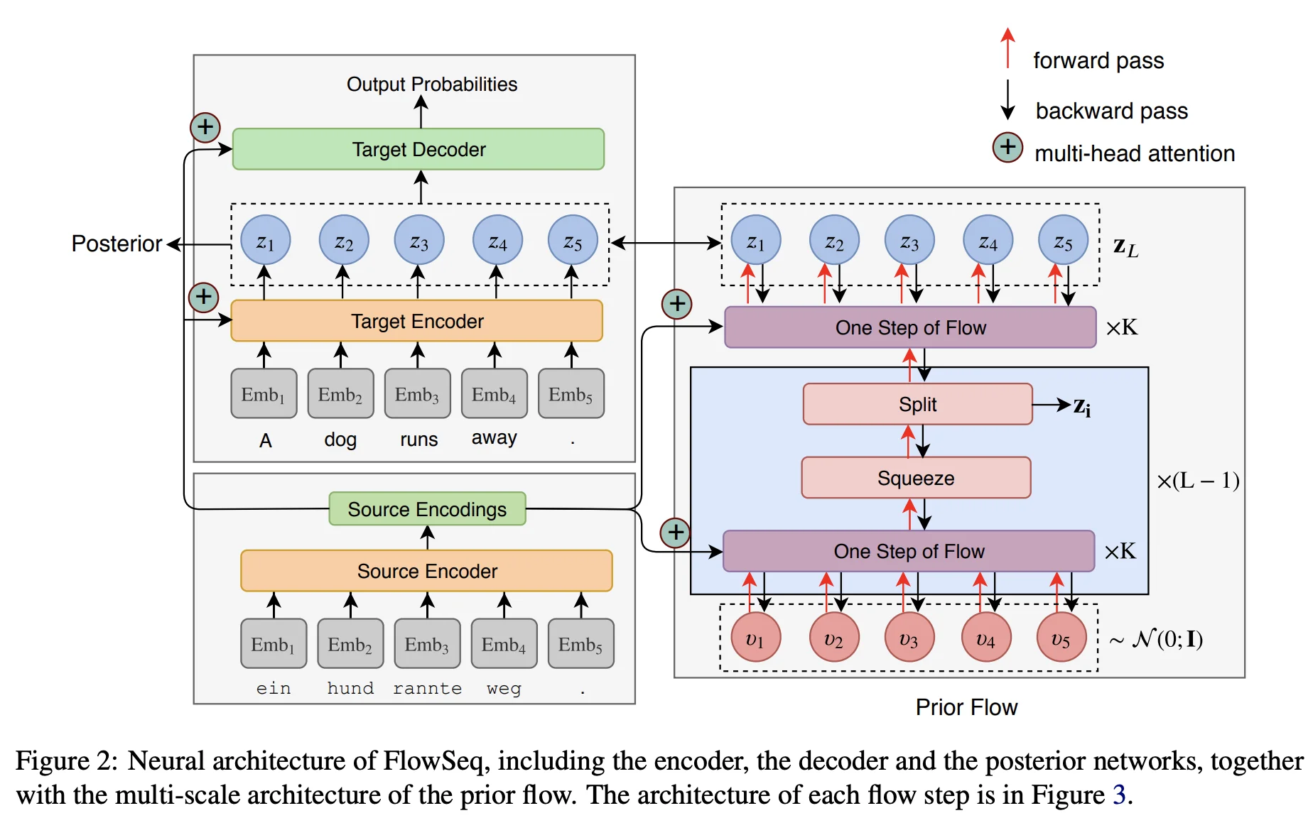 이를 해결하기 위해 본 논문에서는 GAN, VAE와 같은 생성 모델 중 하나인 flow-based generative model에 기반한 아키텍쳐를 제안합니다. 저자들은 3개의 invertible한 연산으로 구성된 Flow라는 단위 연산을 정의하고, 이를 통해 fully non-autoregressive한 generation을 가능케 하는 FlowSeq 아키텍쳐를 고안했습니다.