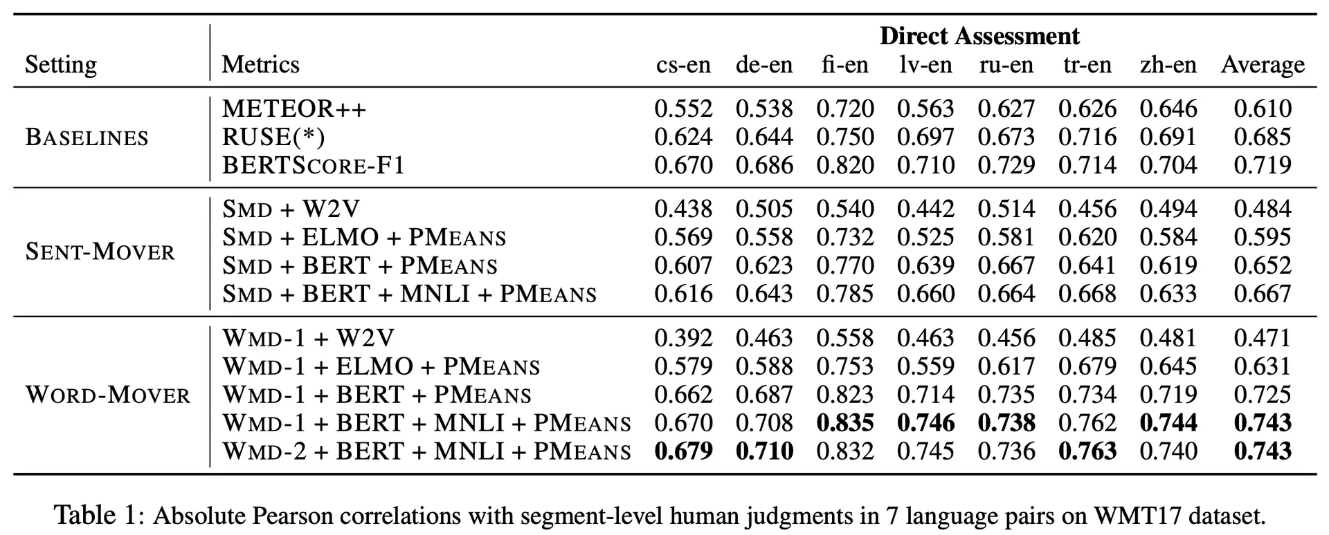 본 논문에서는 실제 사람이 평가하는 점수와 상관관계가 높은 새로운 평가 척도를 제시합니다. 저자들은 BERT, ELMo와 같은 contextual embedding을 사용해 이에 대한 거리(distance)를 feature로 사용했습니다. 선행 연구 중 BERTScore (Tianyi Zhang et al., 2019)와 유사한 점이 있지만 이와의 차이점과 개선방안을 제시합니다.
