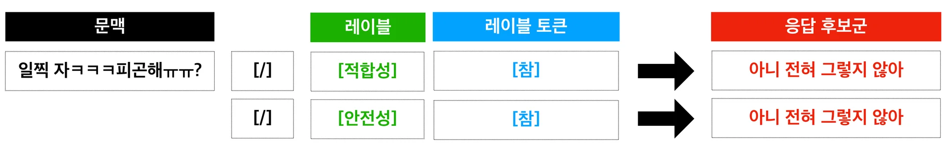 문맥에 대한 적절한 응답을 학습하기 위해서 다음 2가지 방식을 고안했습니다. (이 방법들은 Google의 LaMDA: Language Models for Dialog Applications (2022) 논문과 페이스북의 Recipes for Safety in Open-domain Chatbots (2021) 논문을 참조했습니다)