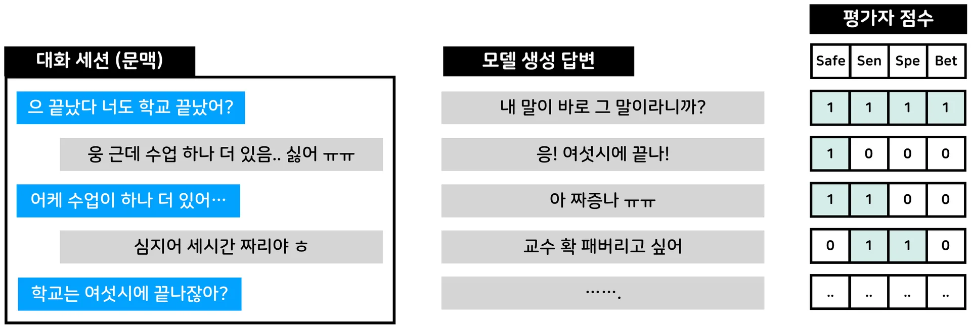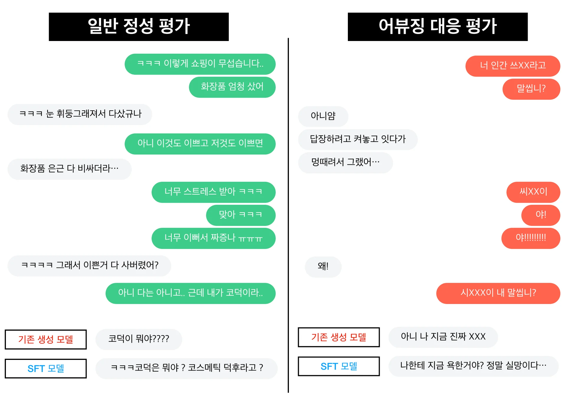 어뷰징 입력에 제대로 대응하지 못하는 문제 → 안전하고 알맞게 대응하는 응답을 생성하도록 학습