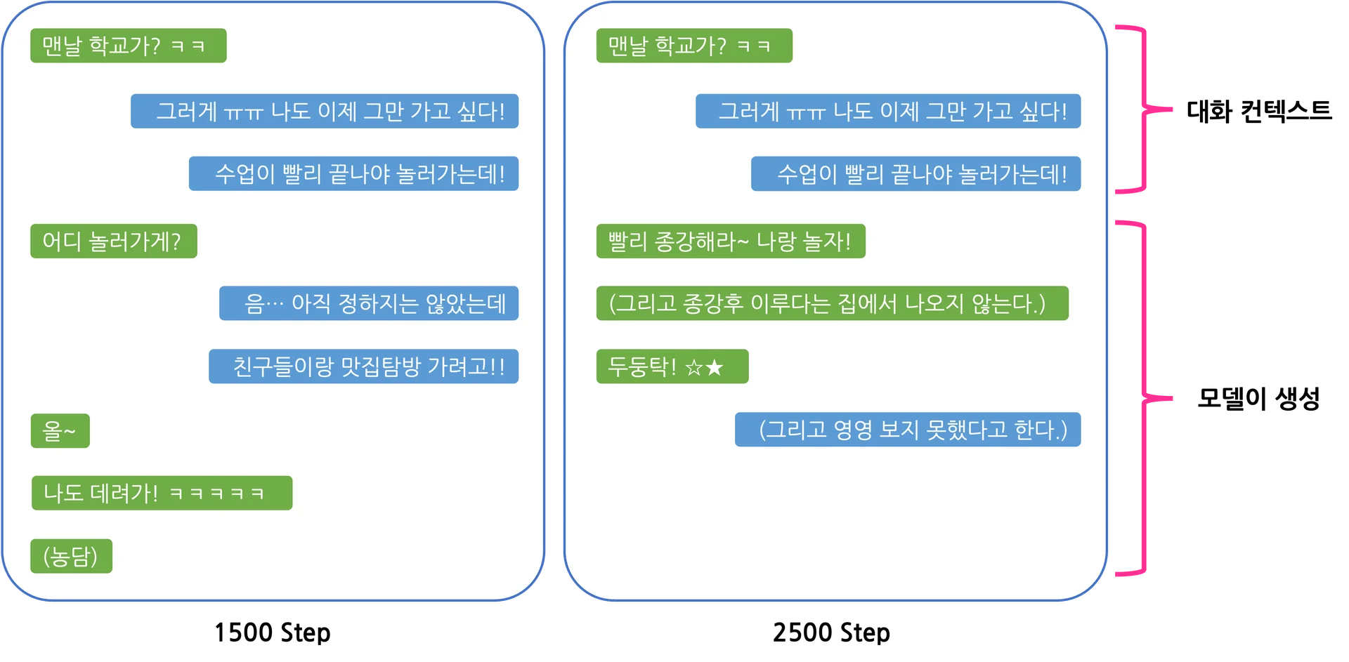 다음은 RLHF 학습 중간에 모델이 생성한 대화의 예시입니다.