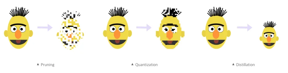 연산 최적화와 달리, 모델 경량화는 학습 과정에서 이루어져야합니다. 모델 경량화에는 크게 세 가지 방법이 존재합니다. 각각 Pruning, Quantization, Distillation인데요. 세 가지 방식 모두 큰 모델을 작게 바꾸는 것은 같으나 접근 방식에 차이가 있습니다.