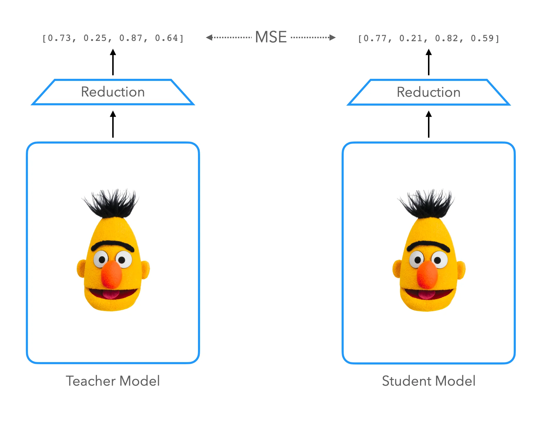 W∈Rdstudent×dteacherW∈Rdstudent×dteacher는 Teacher와 Student의 차원이 다를 경우 정의하는 학습 가능한 파라미터입니다.