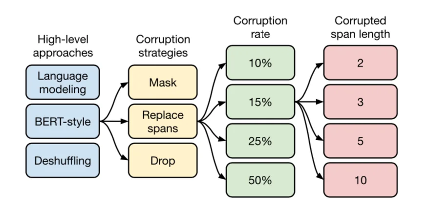 문장 자체의 표현을 더 효율적으로 배우기 위해서 Corruption을 도입하였습니다. 이것은 BERT의 Masking과 동일한 역할을 합니다만 조금 더 다양한 방법을 사용합니다.