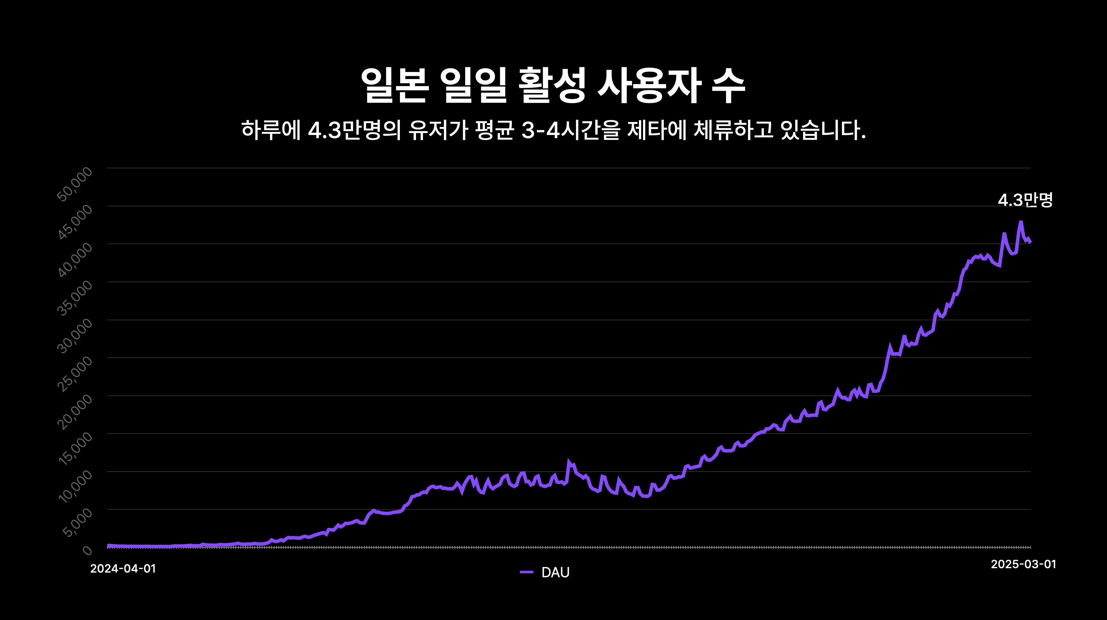 제타의 재미는 특정 문화권에 국한되지 않습니다. 제타의 일본 사용자들은 제타에 더욱 뜨겁게 반응하며, 하루 평균 3시간 40분이라는 경이로운 사용 시간을 기록하고 있습니다. 이는 한국보다 높은 수치이며, 리텐션, 인당 매출 등 모든 지표에서 한국을 능가하고 있습니다.
