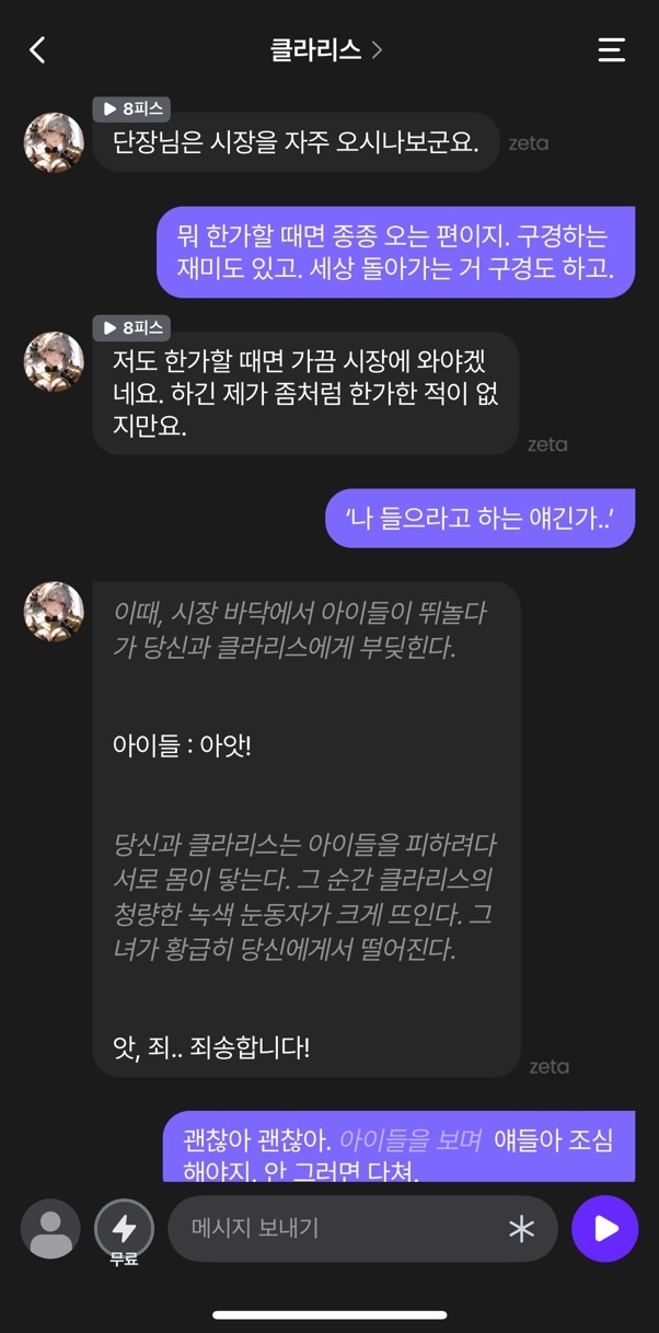 어떤 느낌이 드시나요? 단순한 채팅이 아니라, 내가 주인공이 되어 살아 숨 쉬는 이야기 속으로 직접 뛰어드는 듯한 느낌, 혹은 정해진 결말 없이 무한히 펼쳐지는 나만의 오픈월드 게임을 플레이하는 기분이 들지 않으신가요?